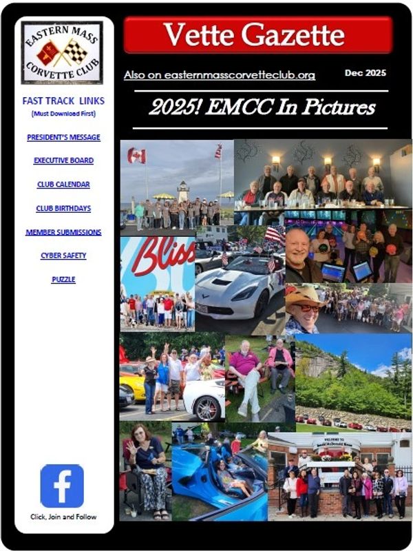 The EMCC Vette Gazette is our monthly publication filled with that month's cruises, photos, events, news and much more!